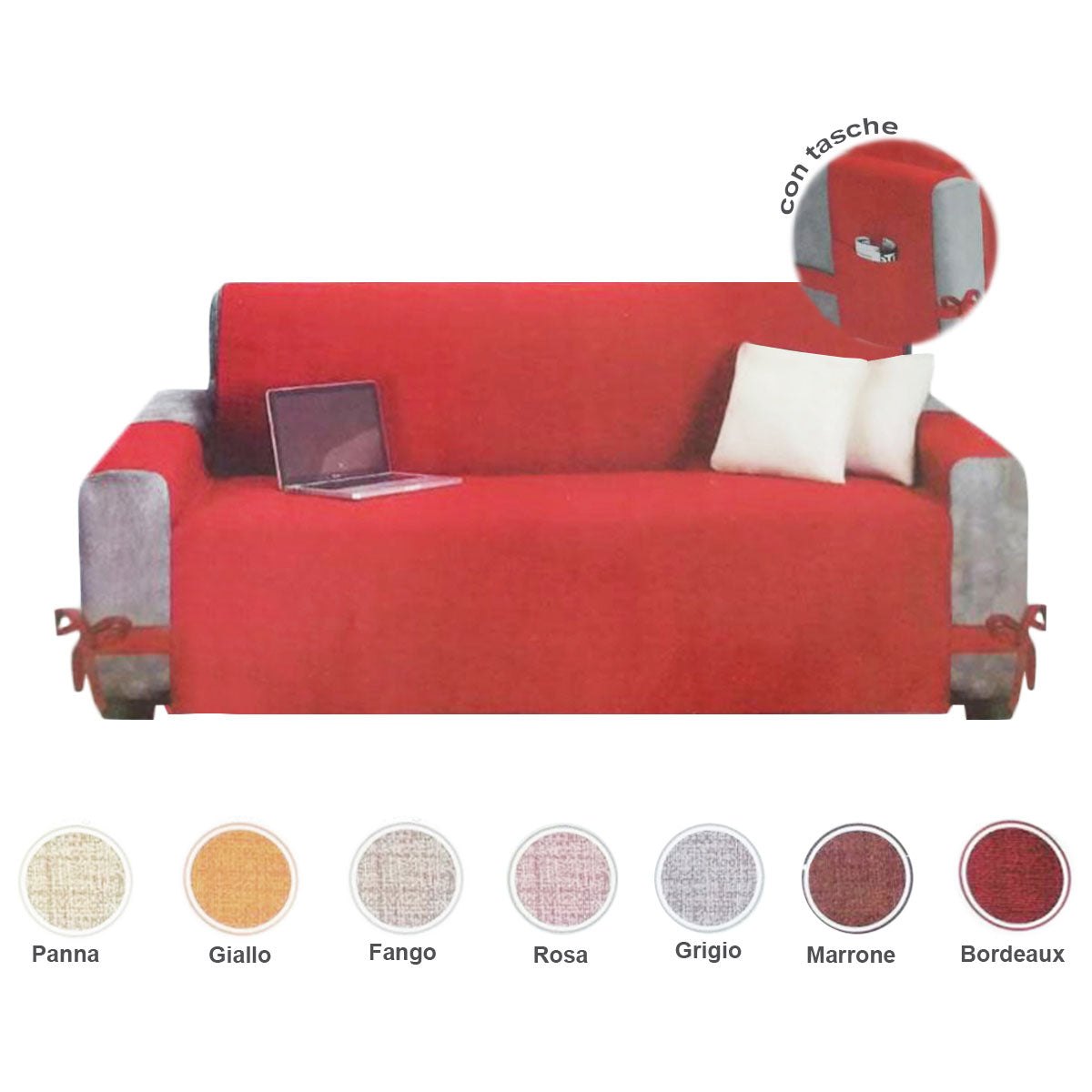 Copridivano con tasche tinta unita