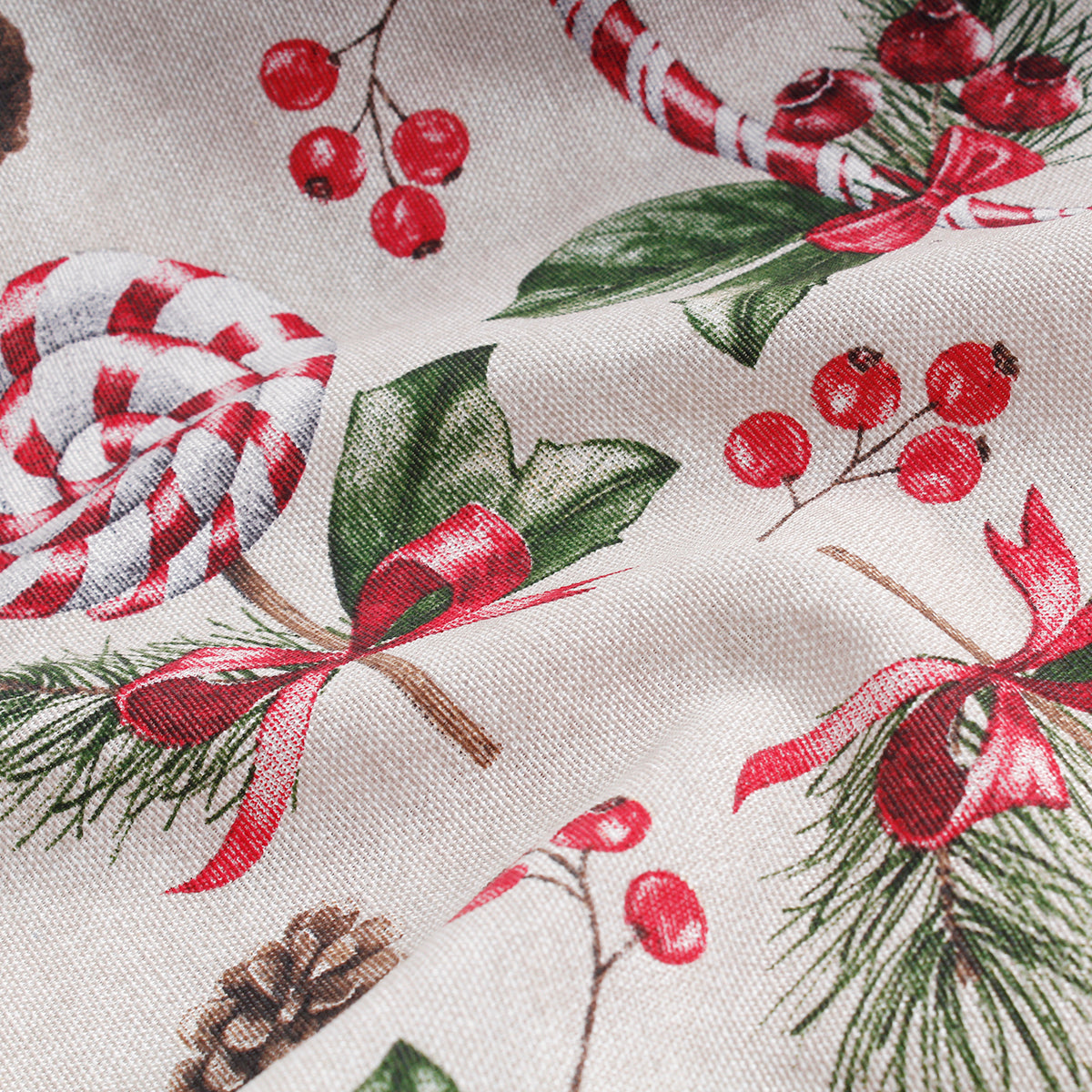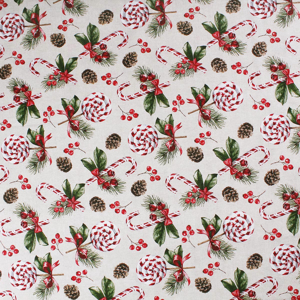 Immergiti nell'atmosfera natalizia con questo incantevole tessuto decorativo che cattura l'essenza delle feste invernali. Il design presenta delizioni bastonicini zucchero.