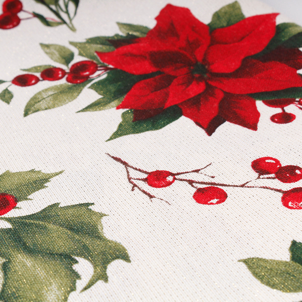 La trama dei tessuti è finemente intrecciata, offrendo una superficie liscia e piacevole al tatto, ideale per creazioni natalizie di ogni tipo. Il motivo classico si integra perfettamente con le decorazioni tradizionali delle feste, creando un'atmosfera accogliente e festosa.